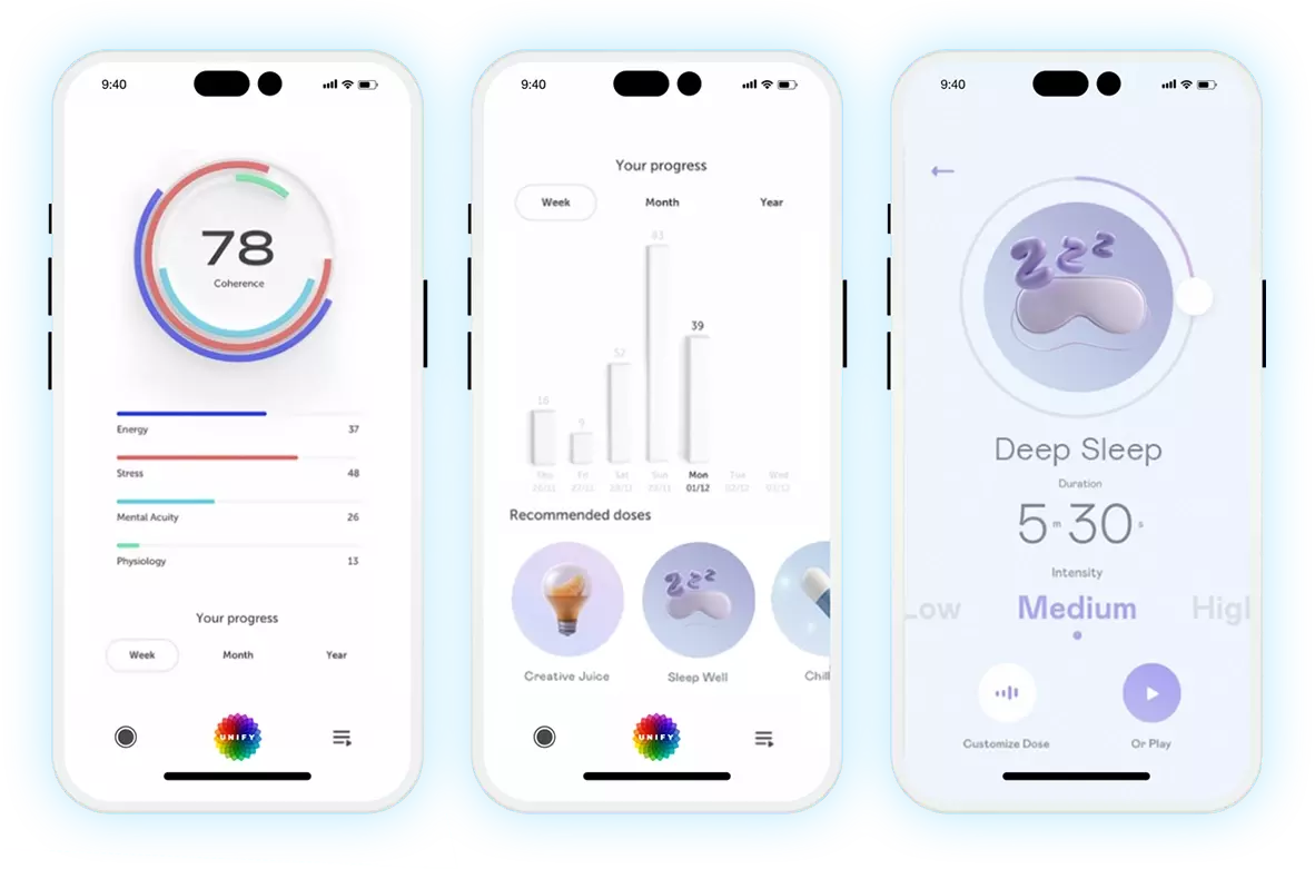 Based on what your brain needs the app generates personalized frequencies that you listen to. This benefits your overall health and well-being.
